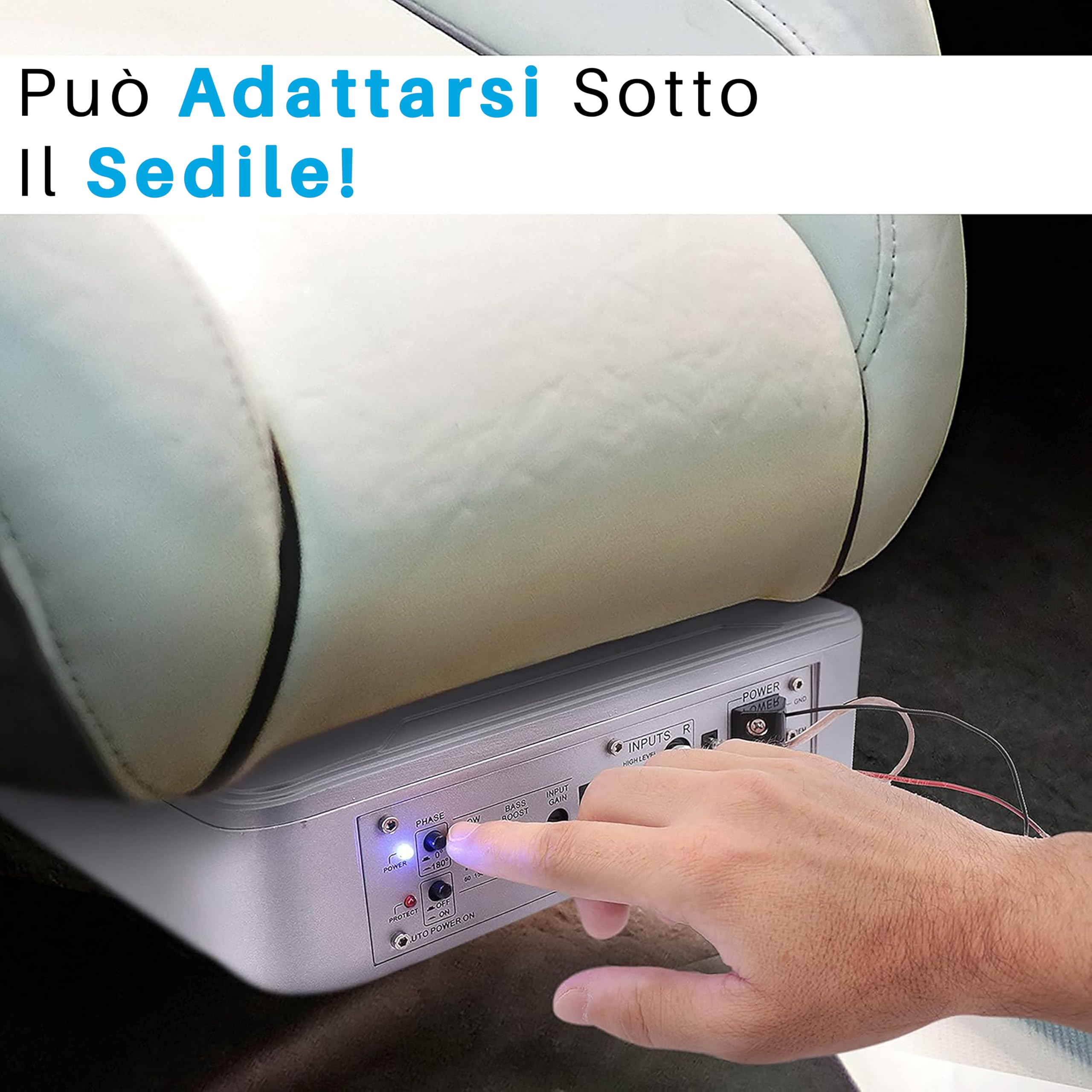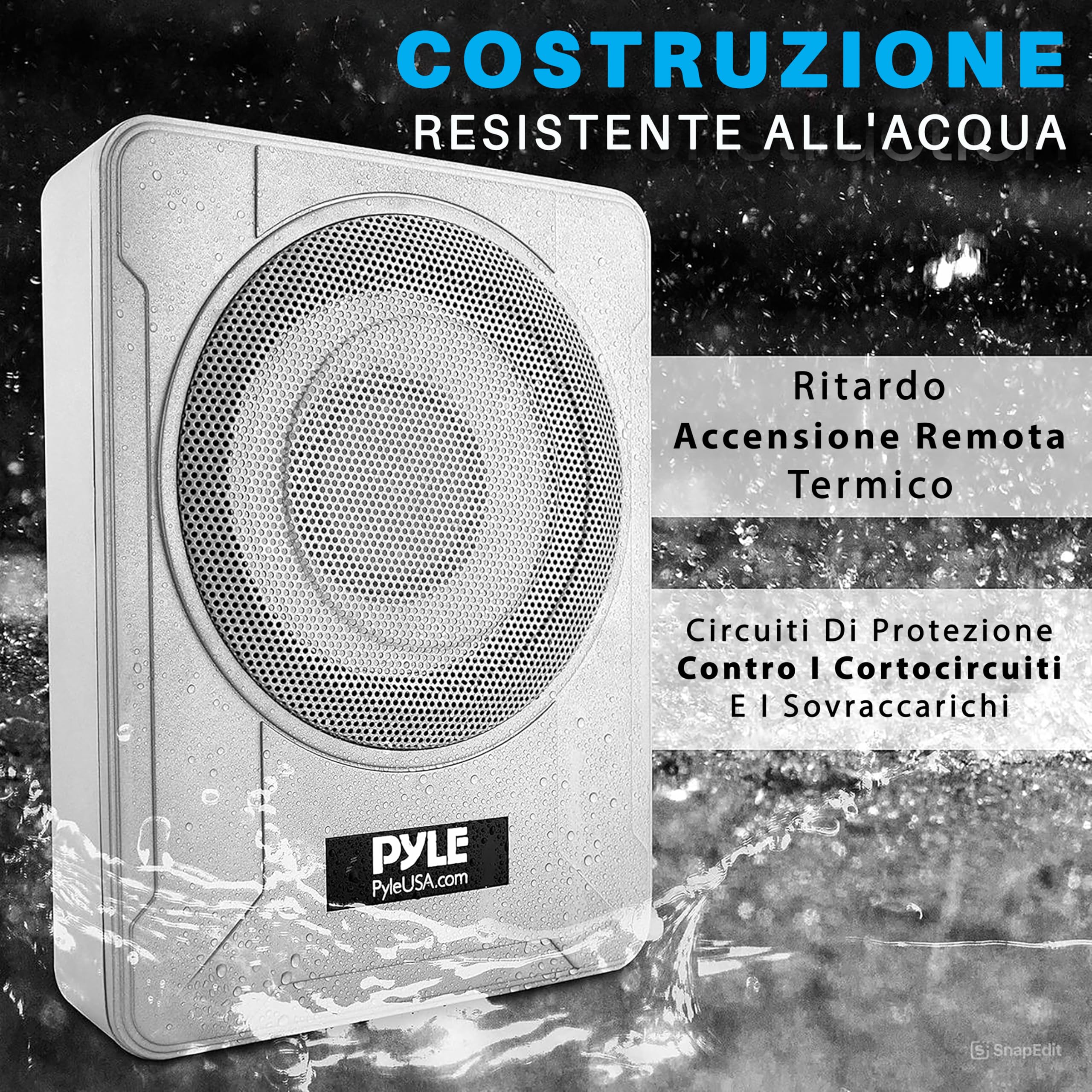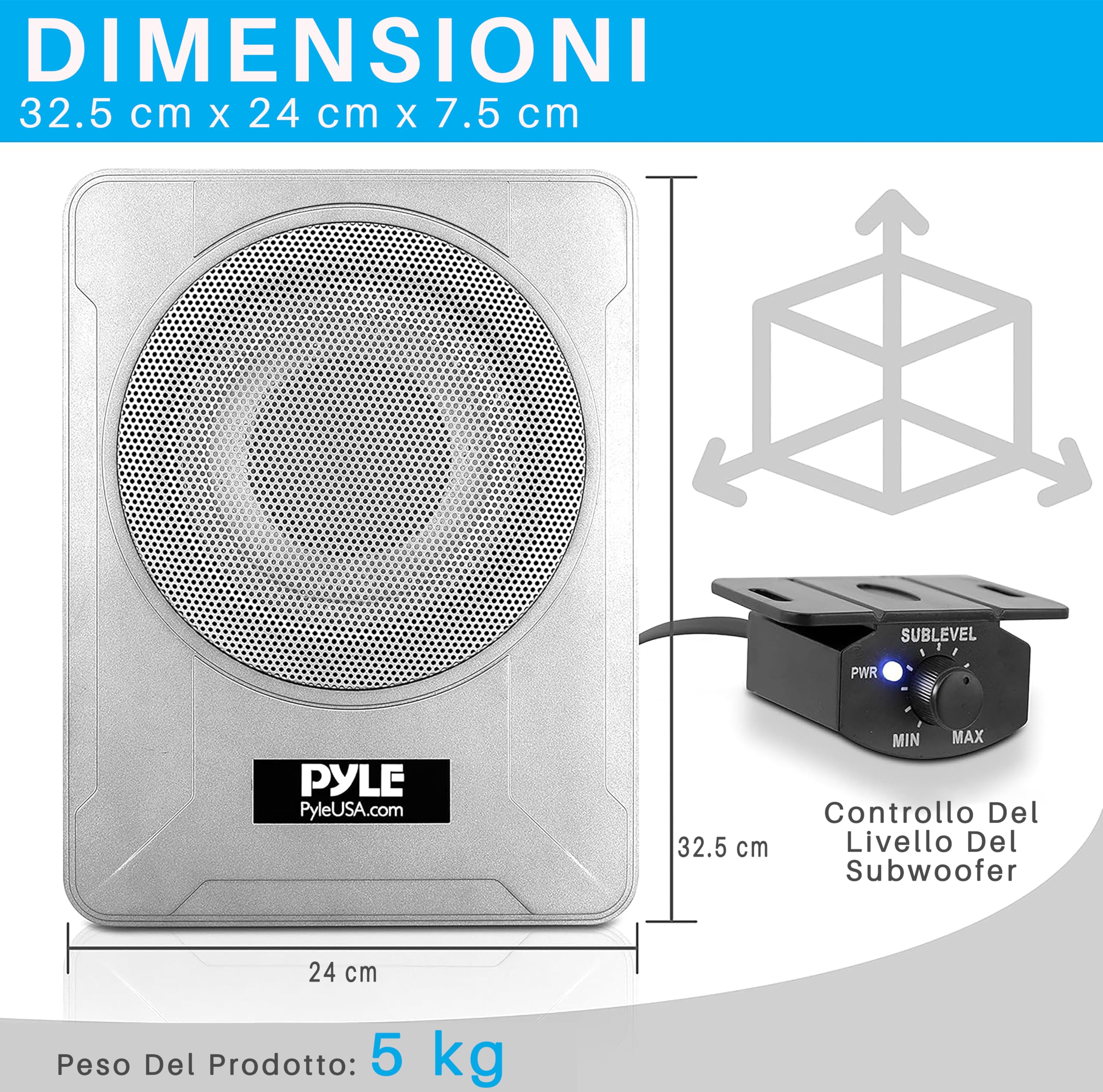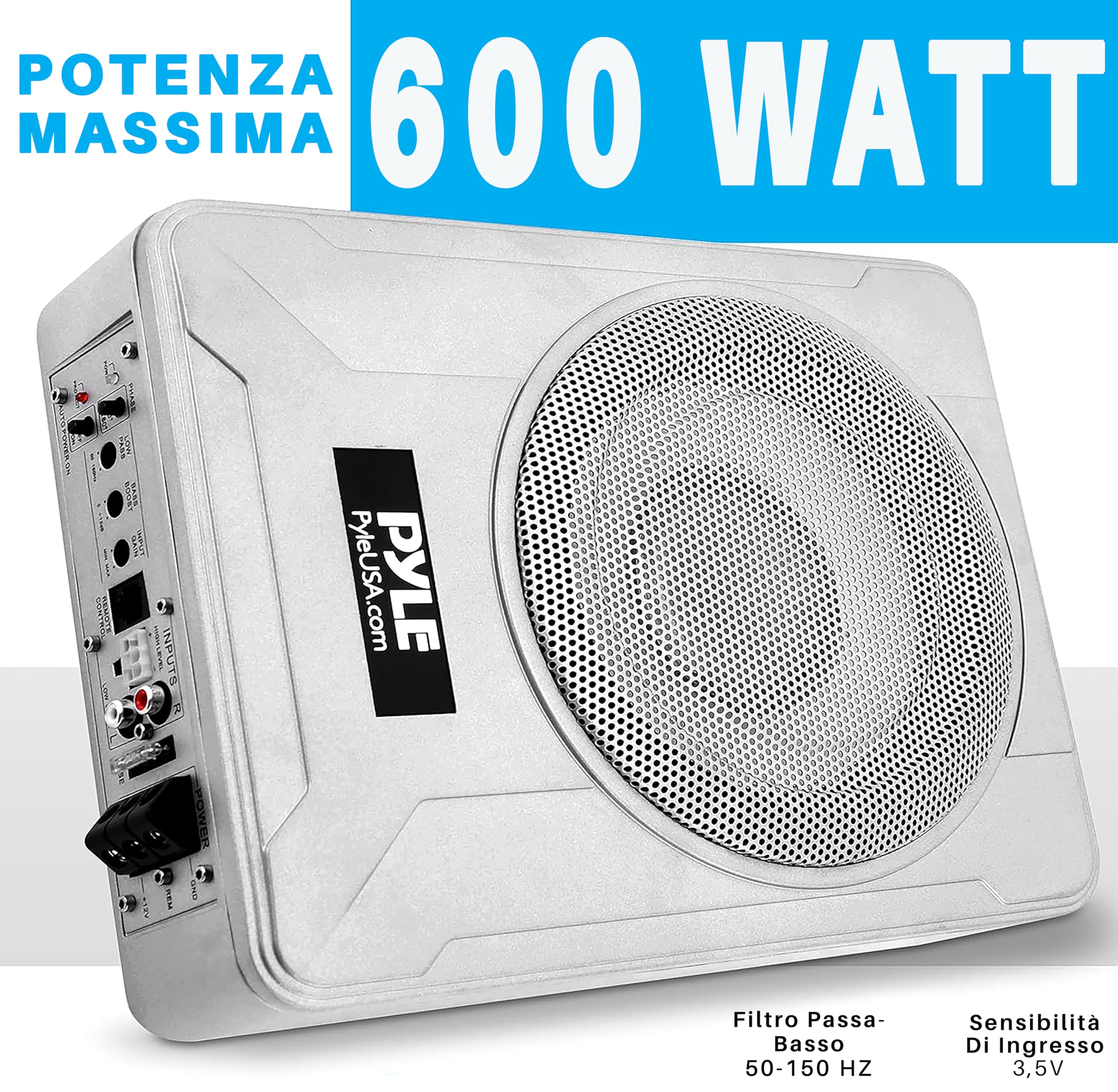 Pyle Subwoofer Amplificato 20 Centimetri 600 Watt, Casse Auto Stereo Compatte Marine Sotto Sedile con Amp Integrato, Ingressi Alto/Basso, Sistema Attivo, Argento