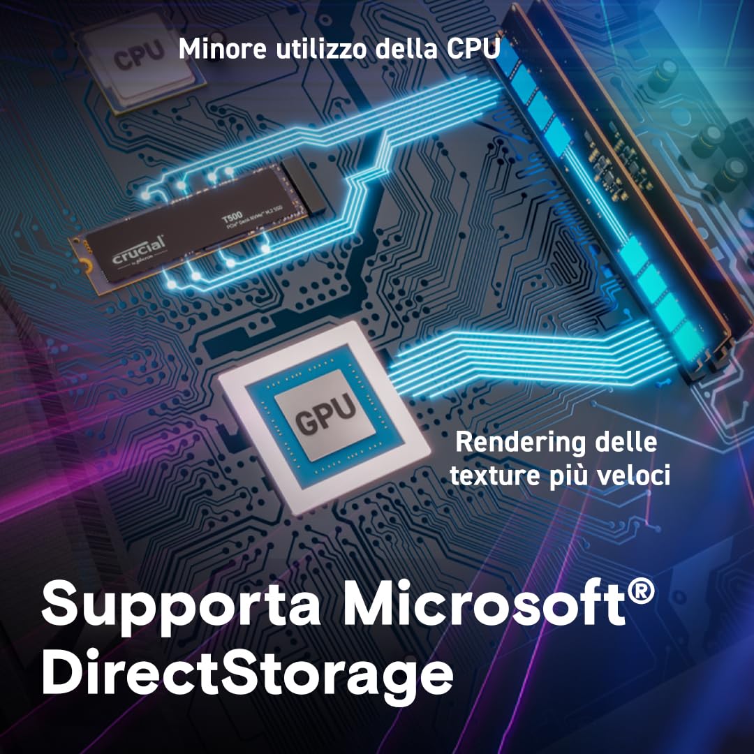 Crucial T500 SSD 1TB PCIe Gen4 NVMe M.2, Fino a 7300 MB/s, TLC NAND, Compatibile con Notebook e PC Desktop, Microsoft DirectStorage - CT1000T500SSD8