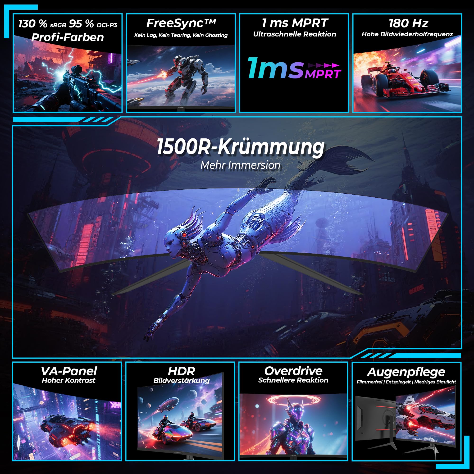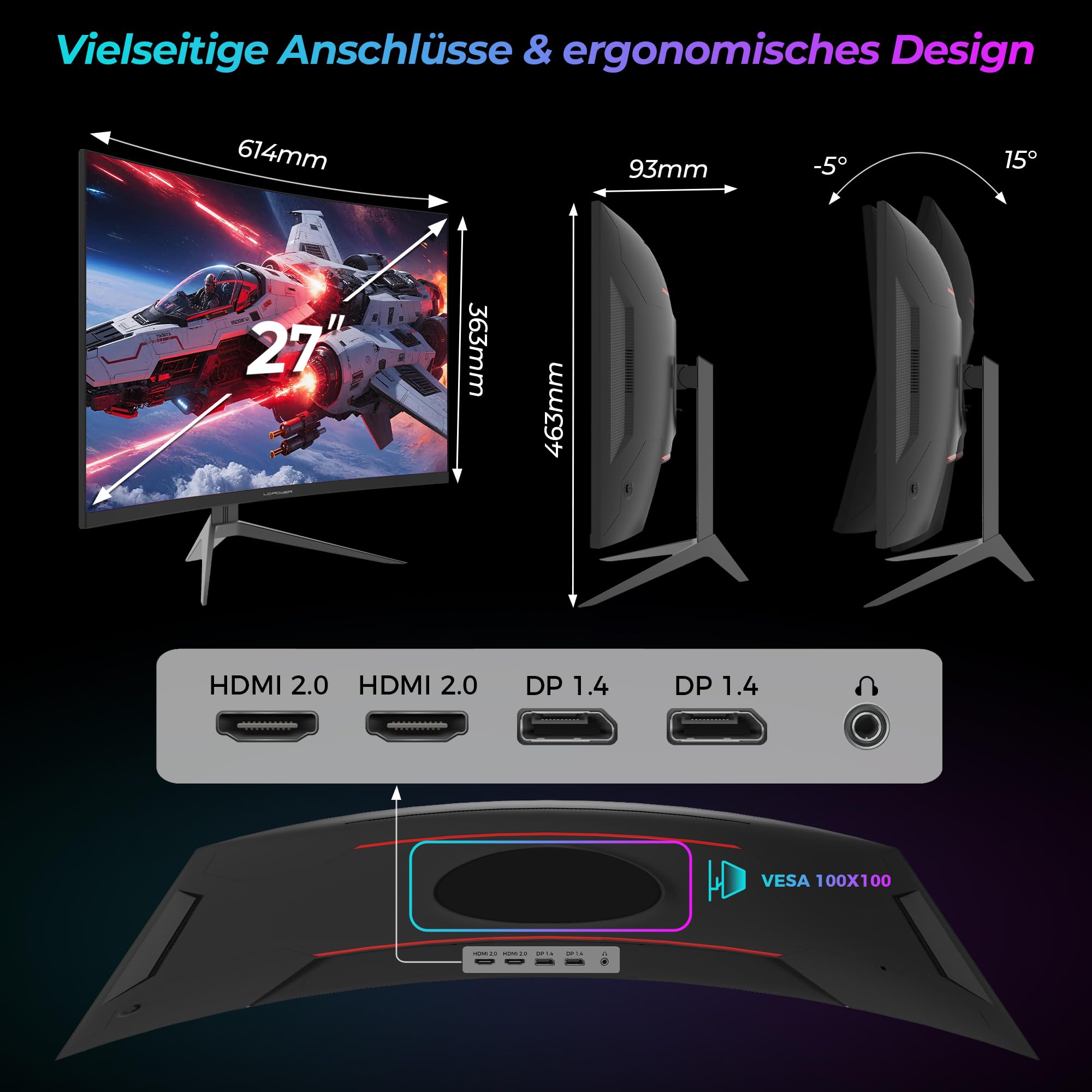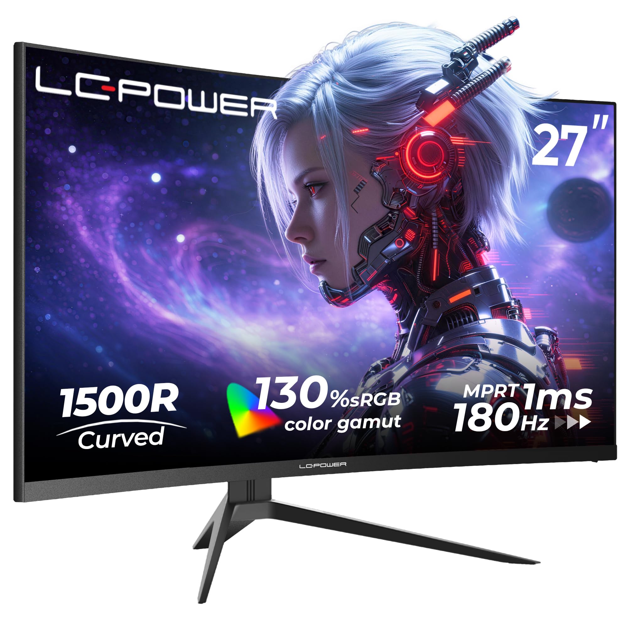 LC-Power LC-M27FC Monitor Gaming 27 Pollici Curvo, FHD 1920x1080, 180 Hz, 1ms MPRT, pannello VA Ultra Rapid, 123,1% sRGB, HDR, AMD FreeSync™, Inclinazione Regolabile, HDMI2.0/DP1.4, VESA 100x100